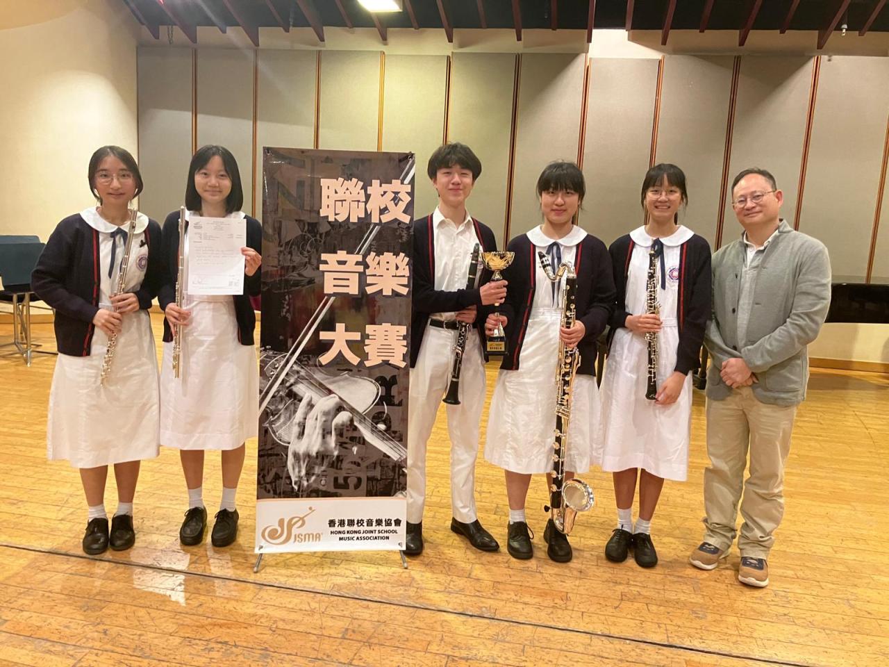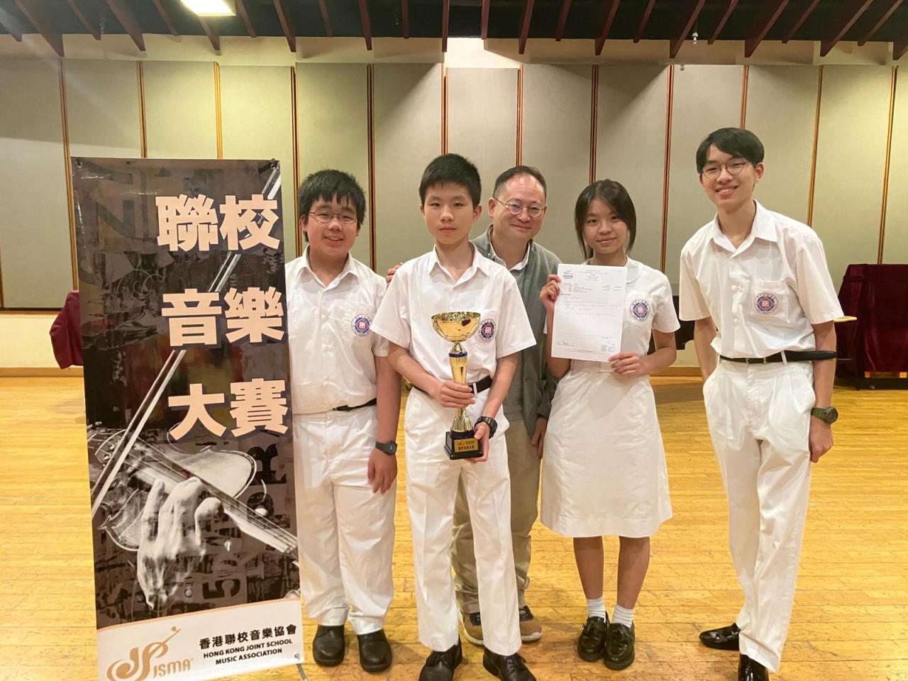 2025-04-12 我校色士風四重奏、木管合奏小組及銅管五重奏代表參加聯校音樂大賽,均榮獲金獎佳績。感謝銀樂隊指揮葉曉洋老師的悉心培訓與指導,讓同學們在比賽中展現出色的音樂才華。恭喜所有參賽的同學。 藝術 比賽