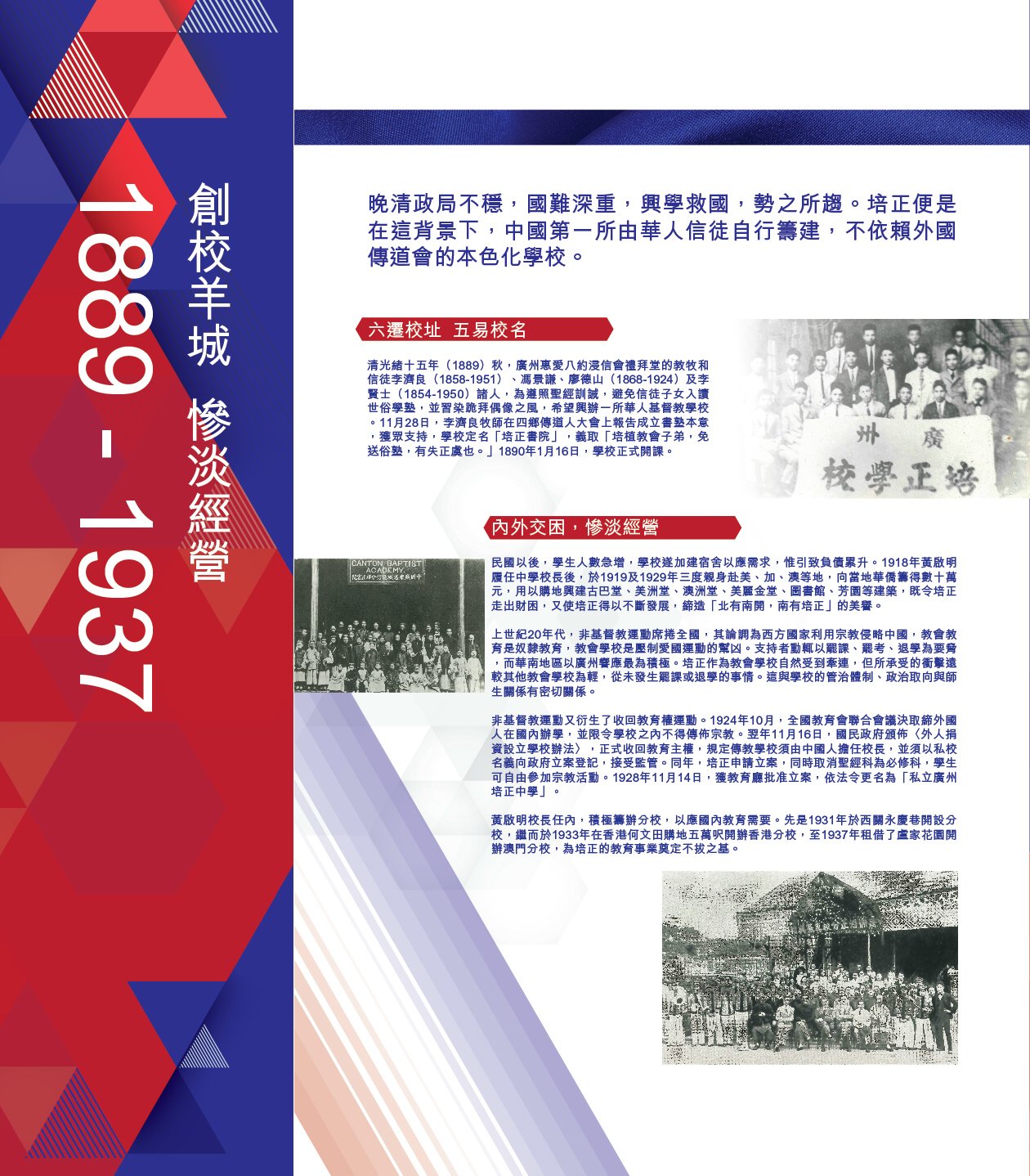 晚清政局不穩,國難深重,興學救國,勢之所趨。培正便是在這背景下,中國第一所由華人信徒自行籌建,不依賴外國傳道會的本色化學校。