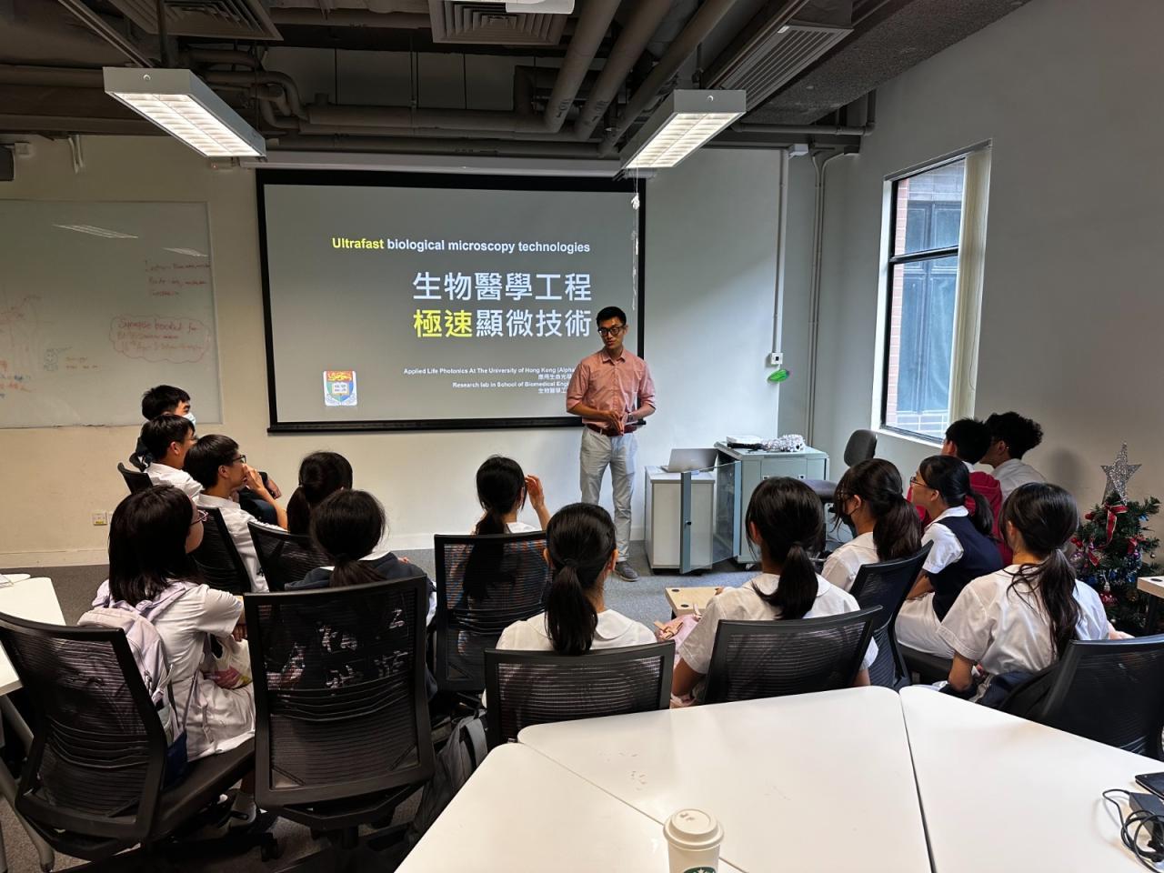 一眾科研先鋒有幸參觀香港大學謝文堅博士的實驗室!在這次深入的學習過程中,學生們認識了編碼光片陣列顯微鏡的構造和原理,對生物醫學工程學的課程和未來工作有了更深刻的了解。