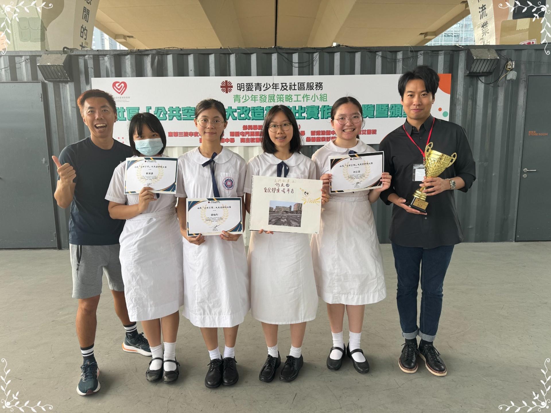 為提升青少年人對社區的關注,明愛青少年及社區服務舉辦「社區公共空間大改造拼貼比謇」。本校有七位高中同學參與比賽,通過採訪及拼貼製作,建議社區改善方案,並獲得優異獎;五善班林芷澄及四光李穎恩更奪得「最佳表現獎」。期望同學們都能將此活動的精神推而廣之,推動社區關懷。