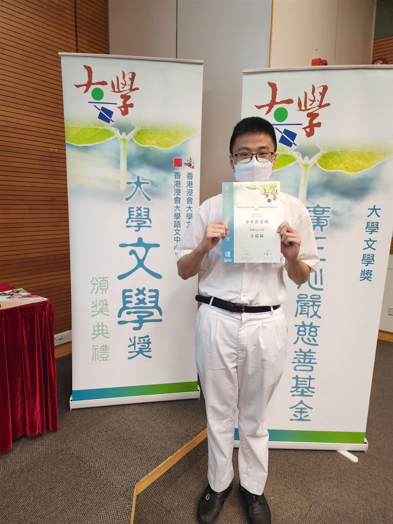中四望班丁泓霖同學以〈棋盤上的守護〉一文,獲得香港浸會大學主辦的第十二屆大學文學獎少年作家獎,在此恭喜丁同學,祝願他的創作靈感泉湧,寫出更多動人作品