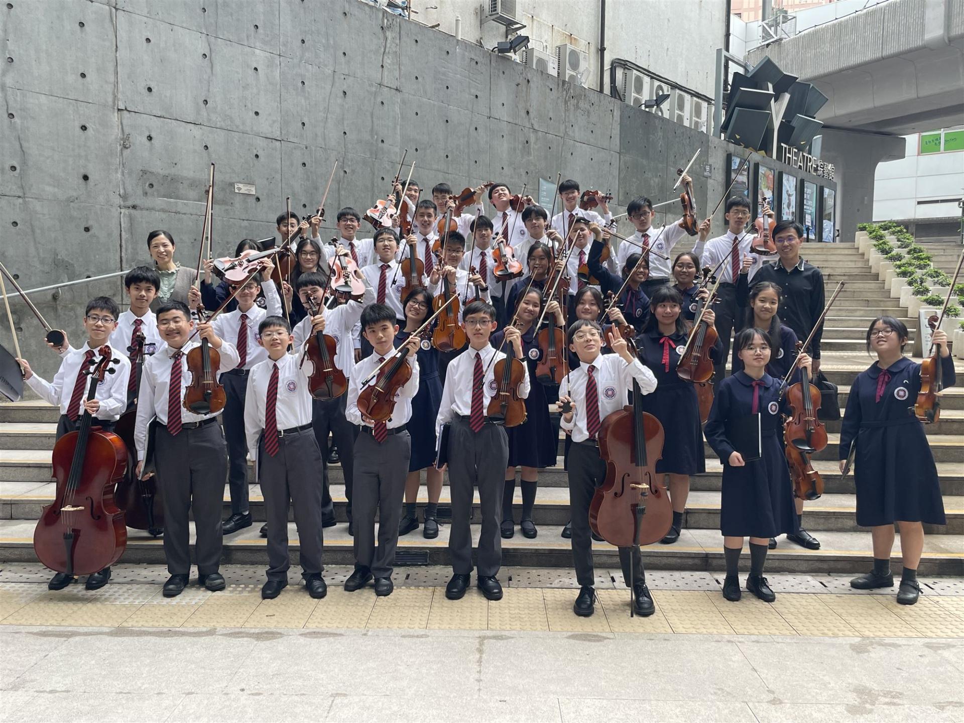 恭喜本校弦樂團、銀樂隊、管弦樂團、無伴奏合唱小組及中樂團在剛舉行的聯校音樂大賽均奪得金獎!