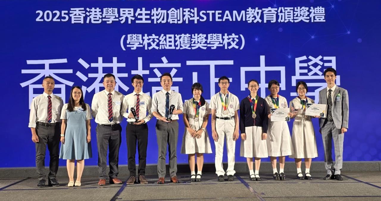 比賽本校憑在生物創科與STEAM教育領域的深厚底蘊及豐碩成果,經大賽評審委員全面評估,獲授「香港傑出生物創科教育學校大獎」、「香港傑出STEAM校長領導大獎」、「香港傑出STEAM學生大獎」及「香港傑出STEAM教師大獎」,展現出本校學生非凡的科學素養及創新精神。