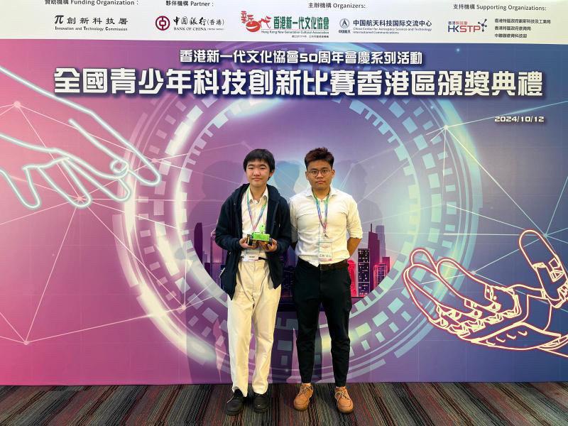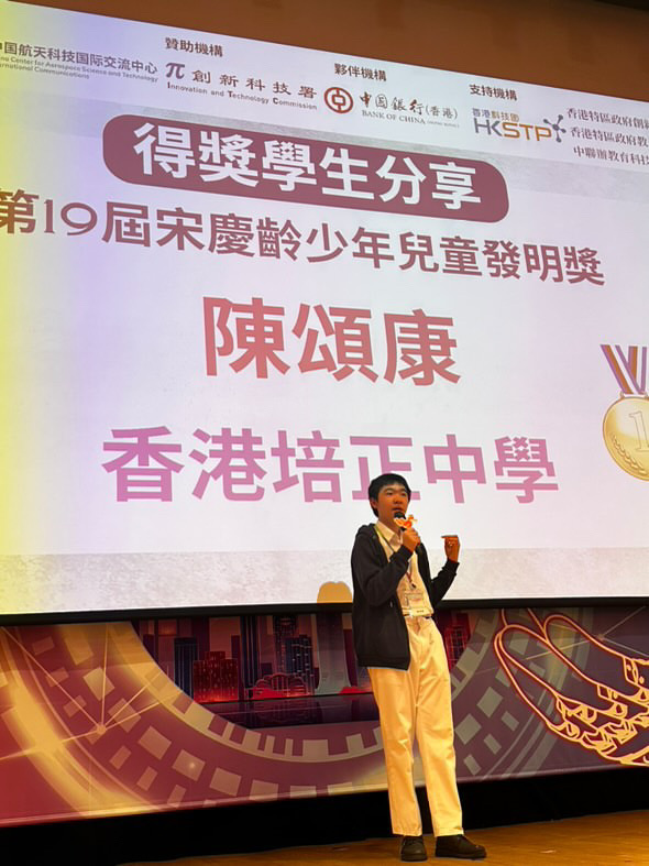 本校中二善班陳頌康於「第19屆宋慶齡少年兒童發明獎」中,勇奪金獎。參賽作品「職安保鑣」也同時獲香港電腦學會邀請代表香港參加12月在汶萊舉辦的「亞太通訊聯盟科技大賽」。