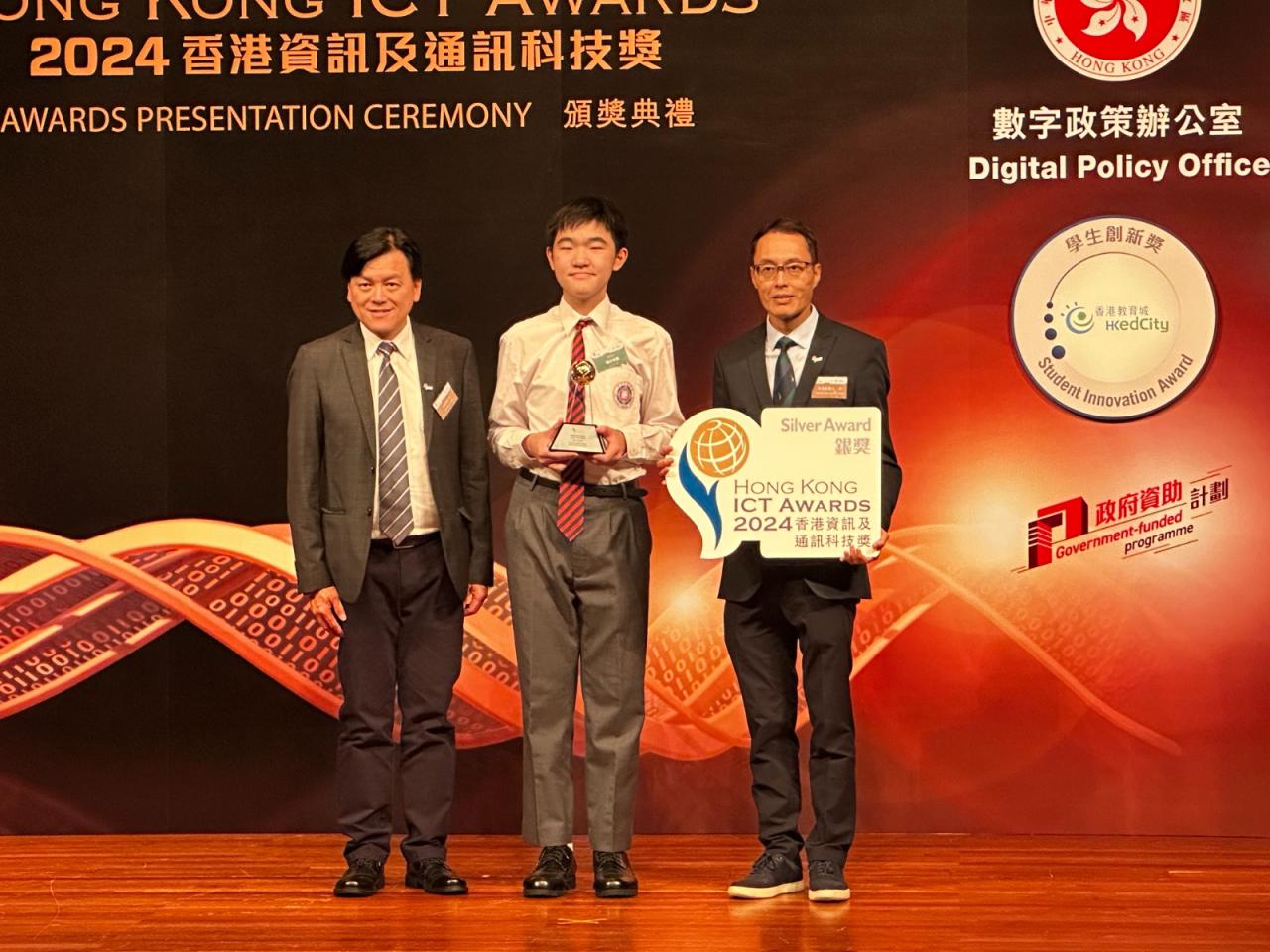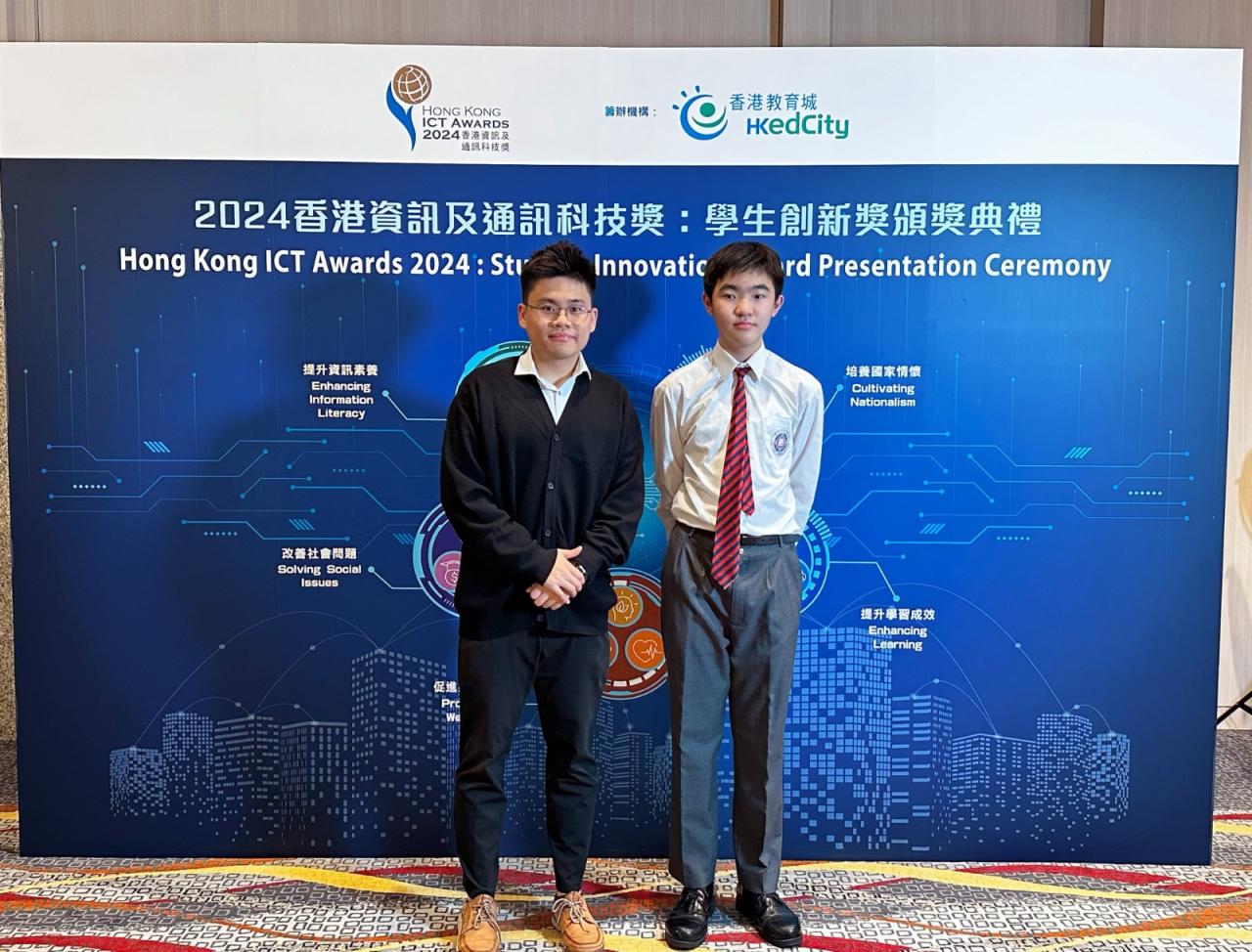 本校中二善班陳頌康於「2024 香港資訊及通訊科技獎」中,勇奪學生創新獎 銀獎。其參賽作品「職安保鏢」為密閉空間工作提出有效及建設性的方案。