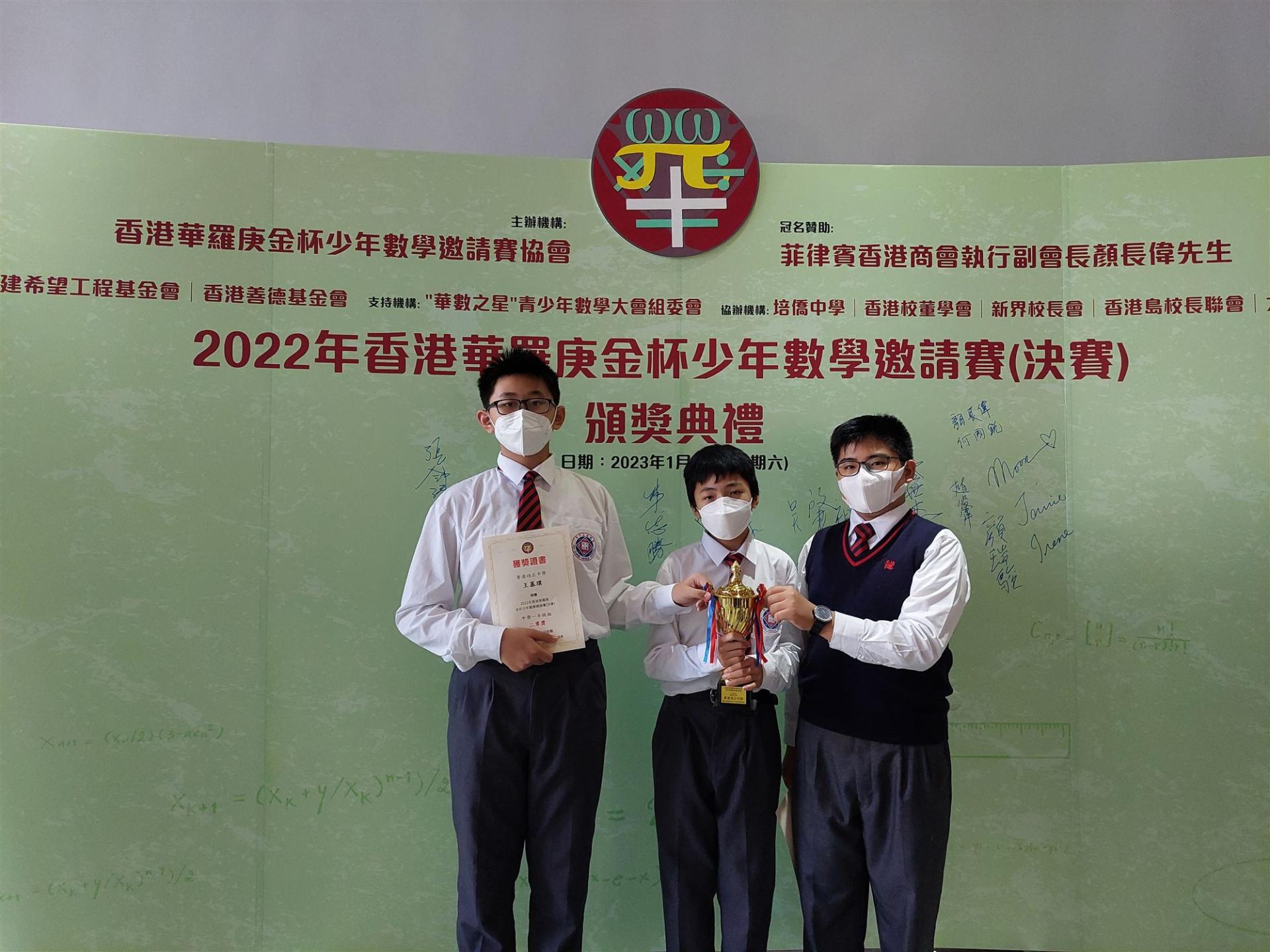 比賽由香港華羅庚金杯少年數學邀請賽協會主辦,旨在紀念和學習我國傑出的數學家華羅庚教授,並激發廣大中小學生學習數學的興趣、開發智力、普及數學科學。本屆比賽於 2022年12月10日 網上舉行,每校可派中一和中二年級各兩名同學參賽。